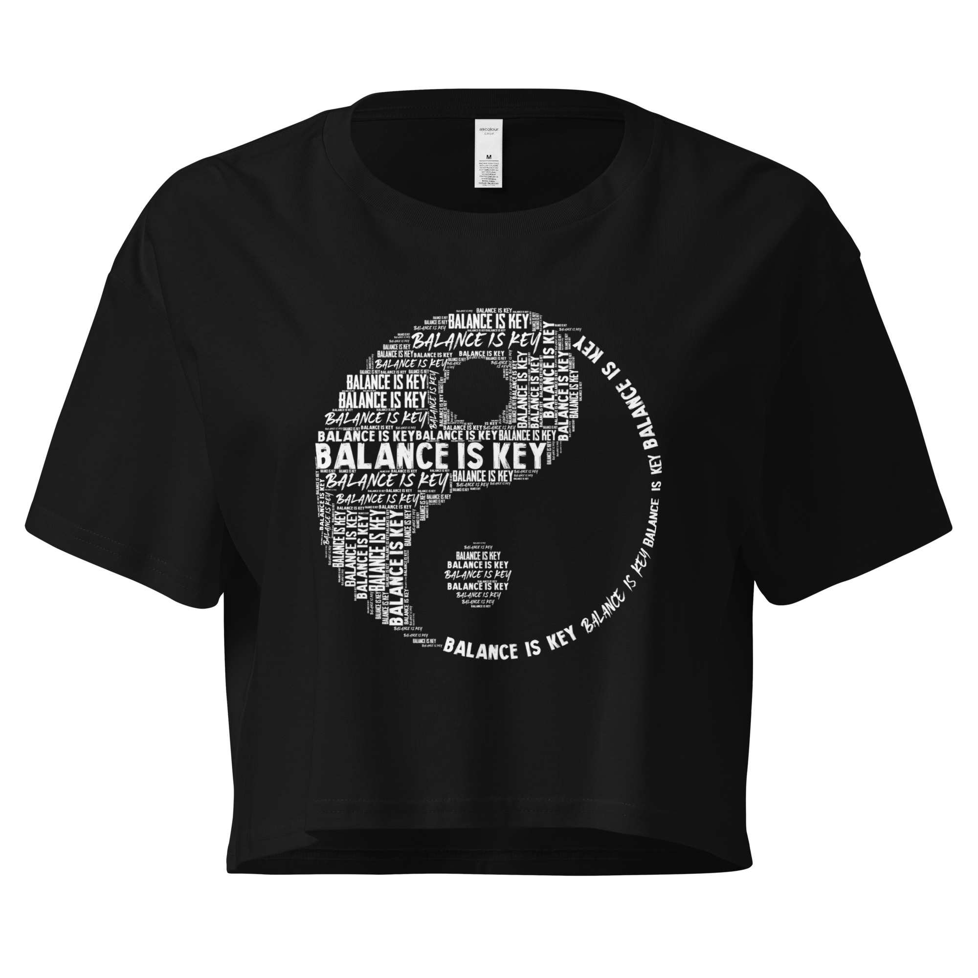 - Our uplifting “Balance Is Key” crop top with a bold, new design!