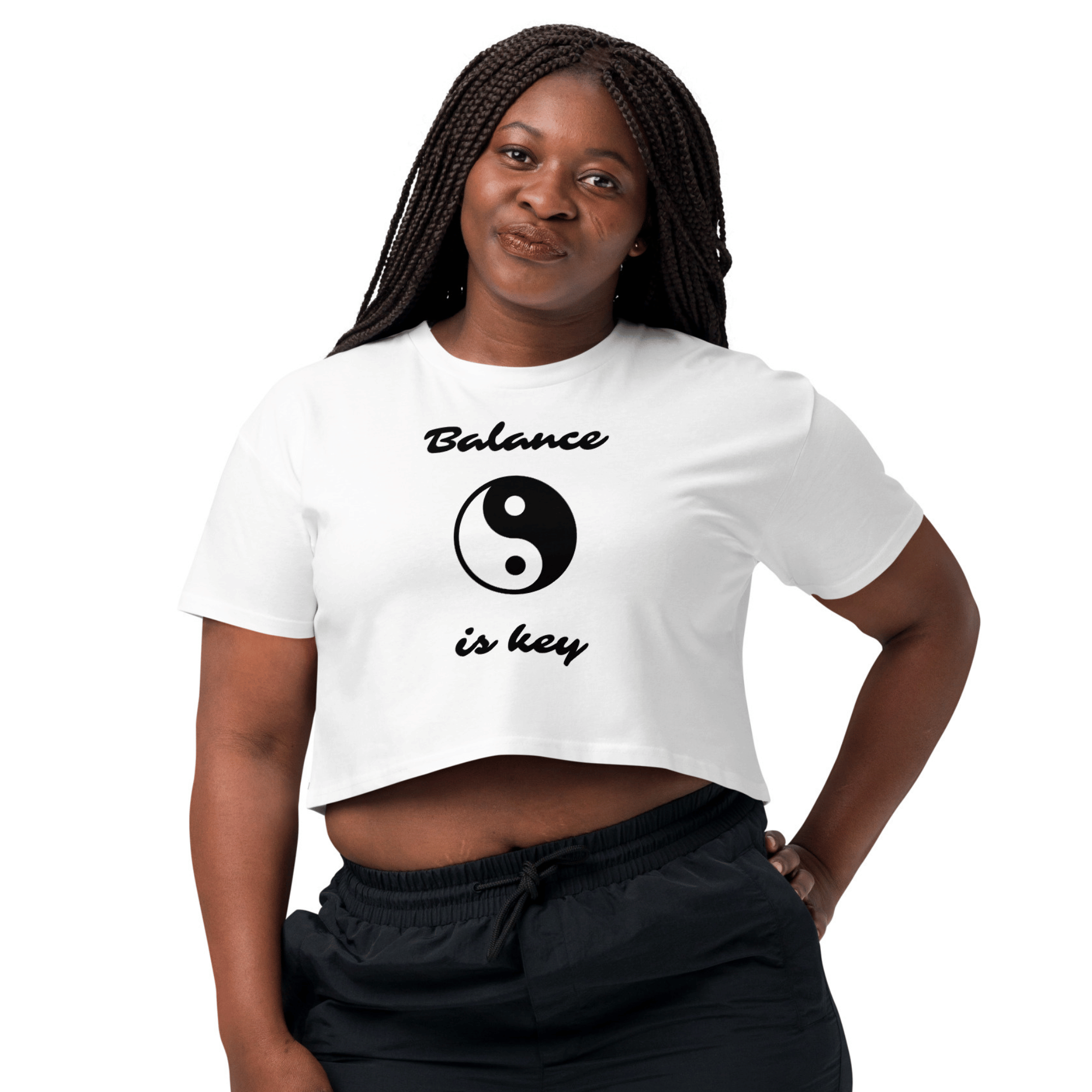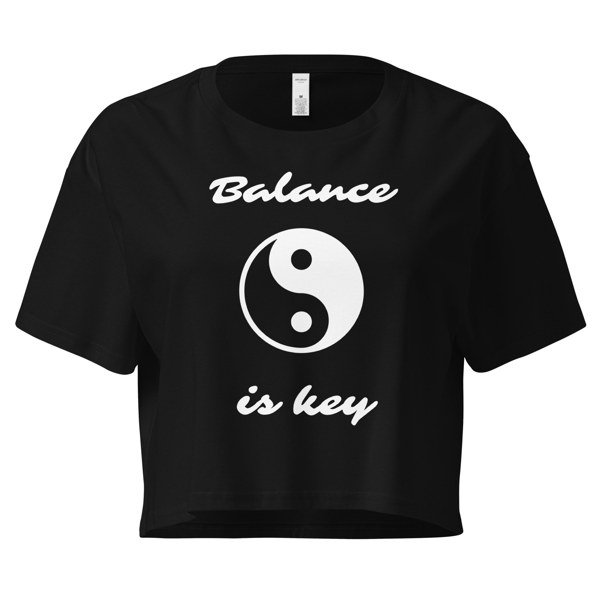 - Our uplifting “Balance is Key” crop top with a yin-yang graphic.