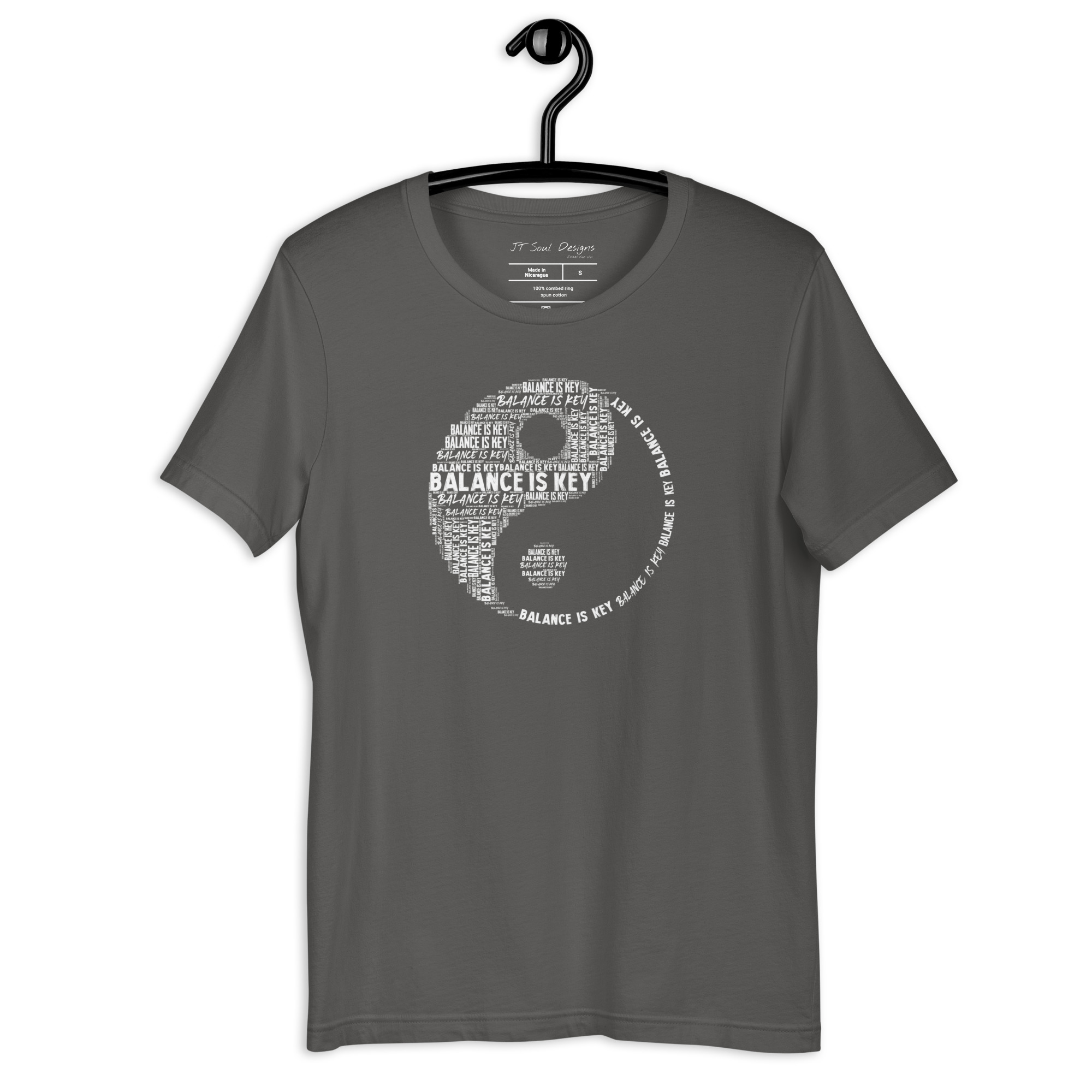 - Our inspiring “Balance is Key” unisex t-shirt with a yin-yang with a bold, new design!