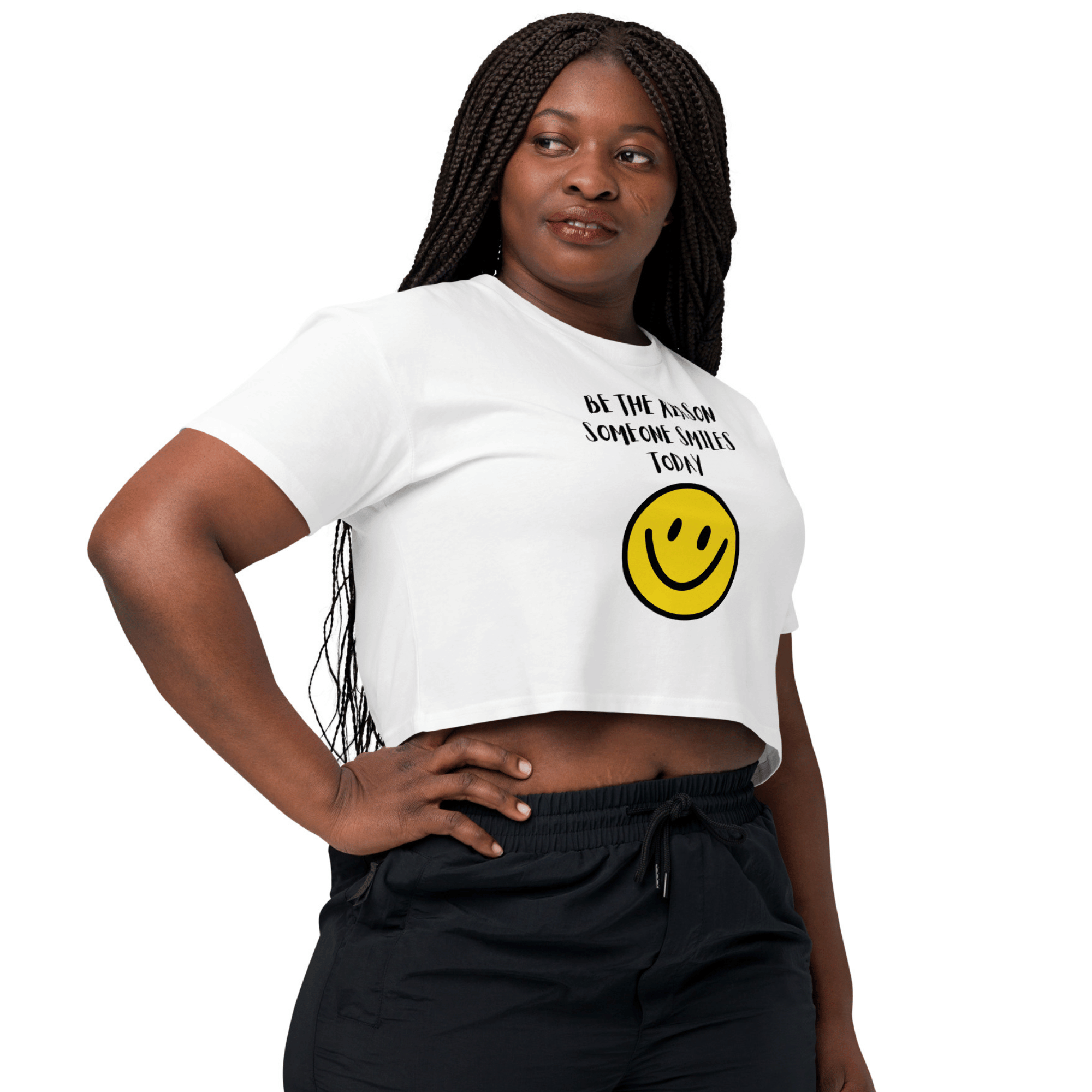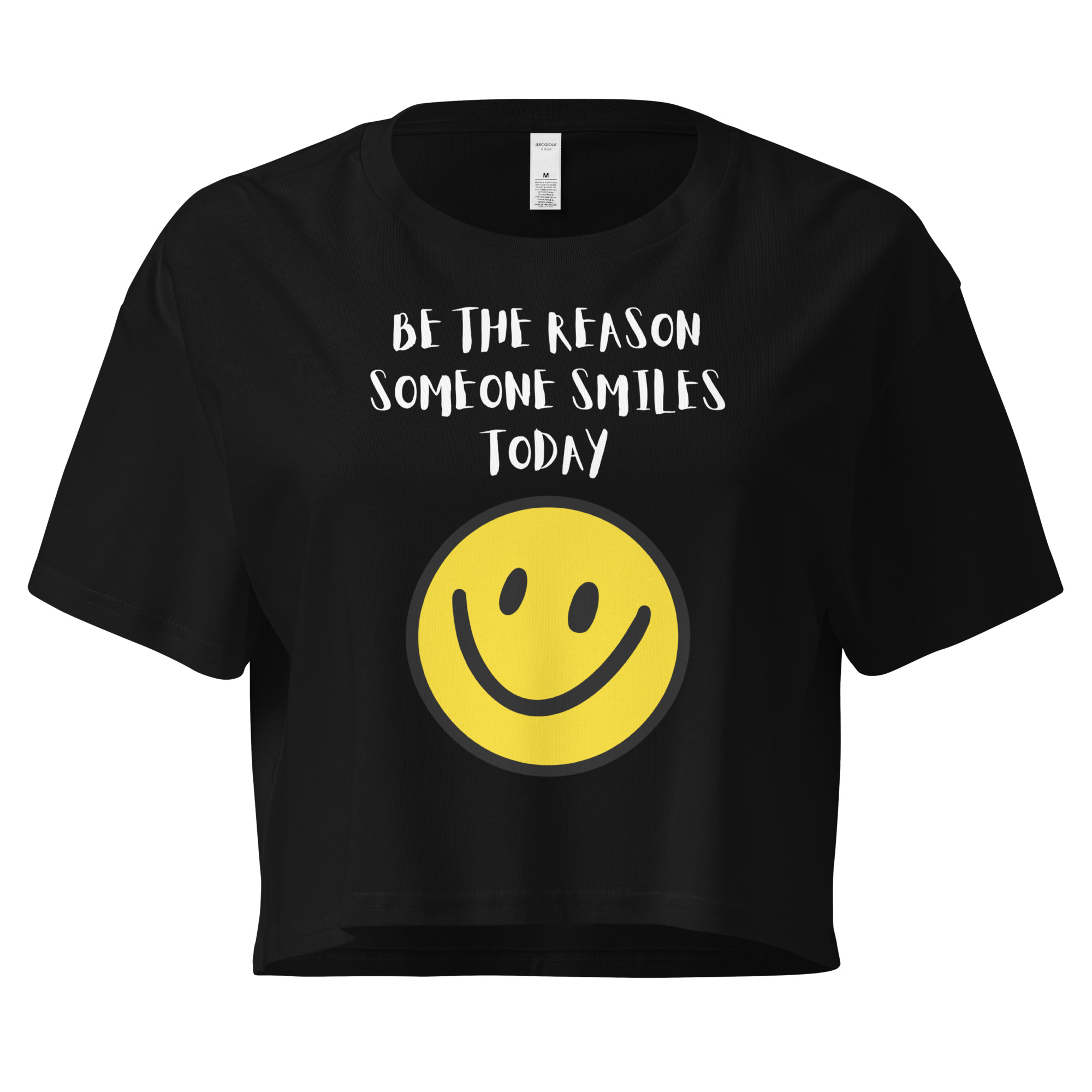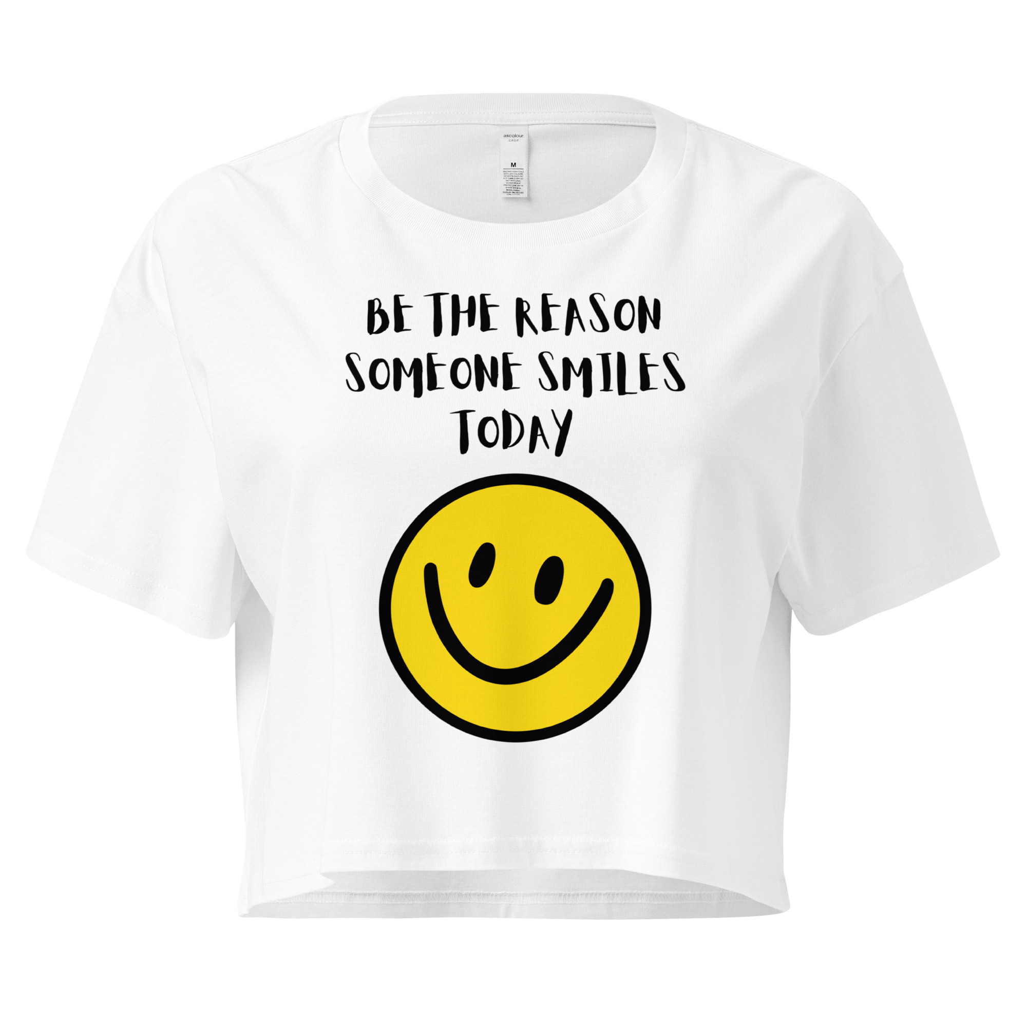 - Our cute “Be The Reason Someone Smiles Today!” crop top with a smiley face.