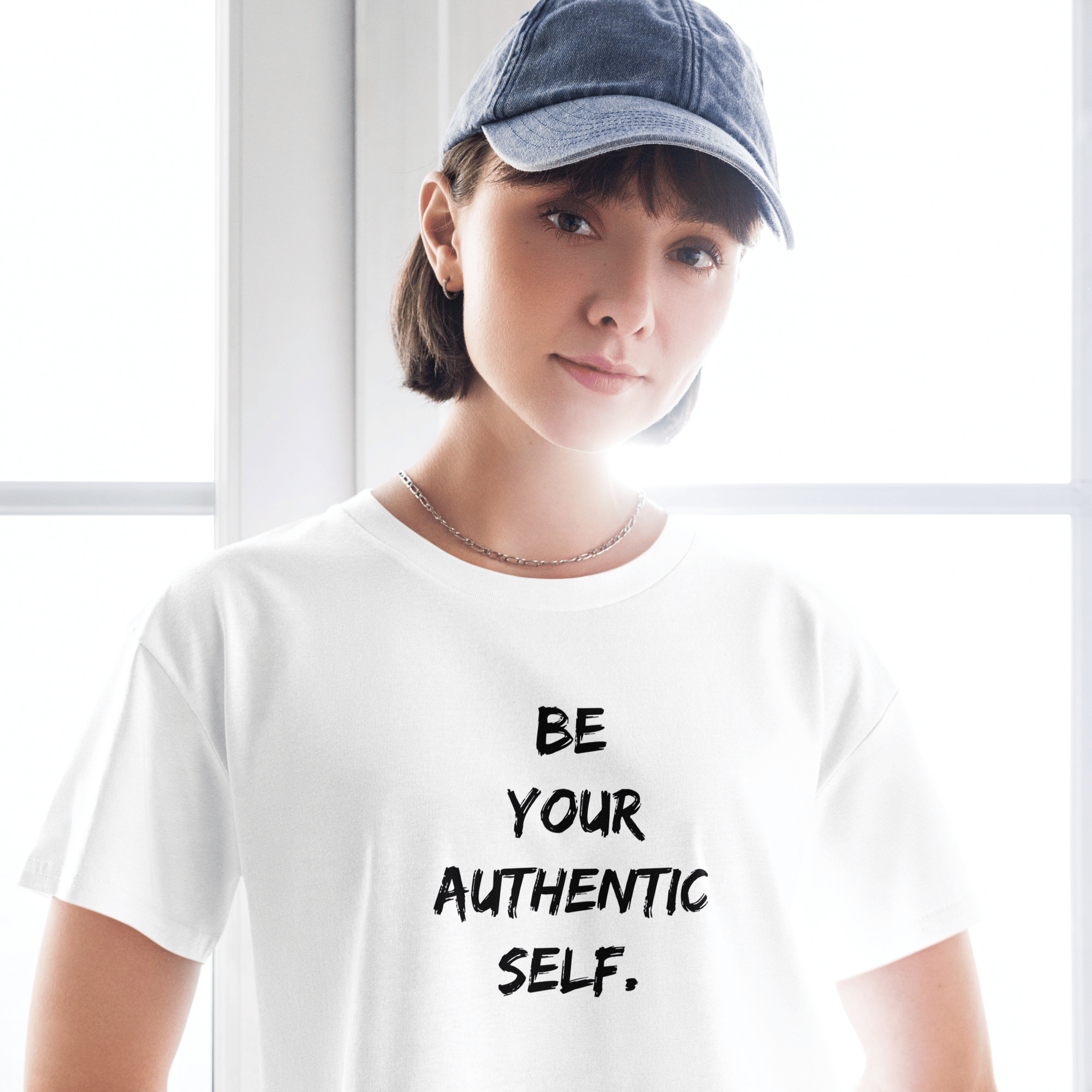Searching for the ideal crop top for her? Look no further! Let me introduce you to our “Be Your Authentic Self” crop top. This cropped t-shirt is a reminder to always show your inner authenticity each day! With its classic font and self-worth phrase, you will constantly be reminded of who you truly are! This catchy phrase will definitely remind any onlookers to stay authentic to themselves!