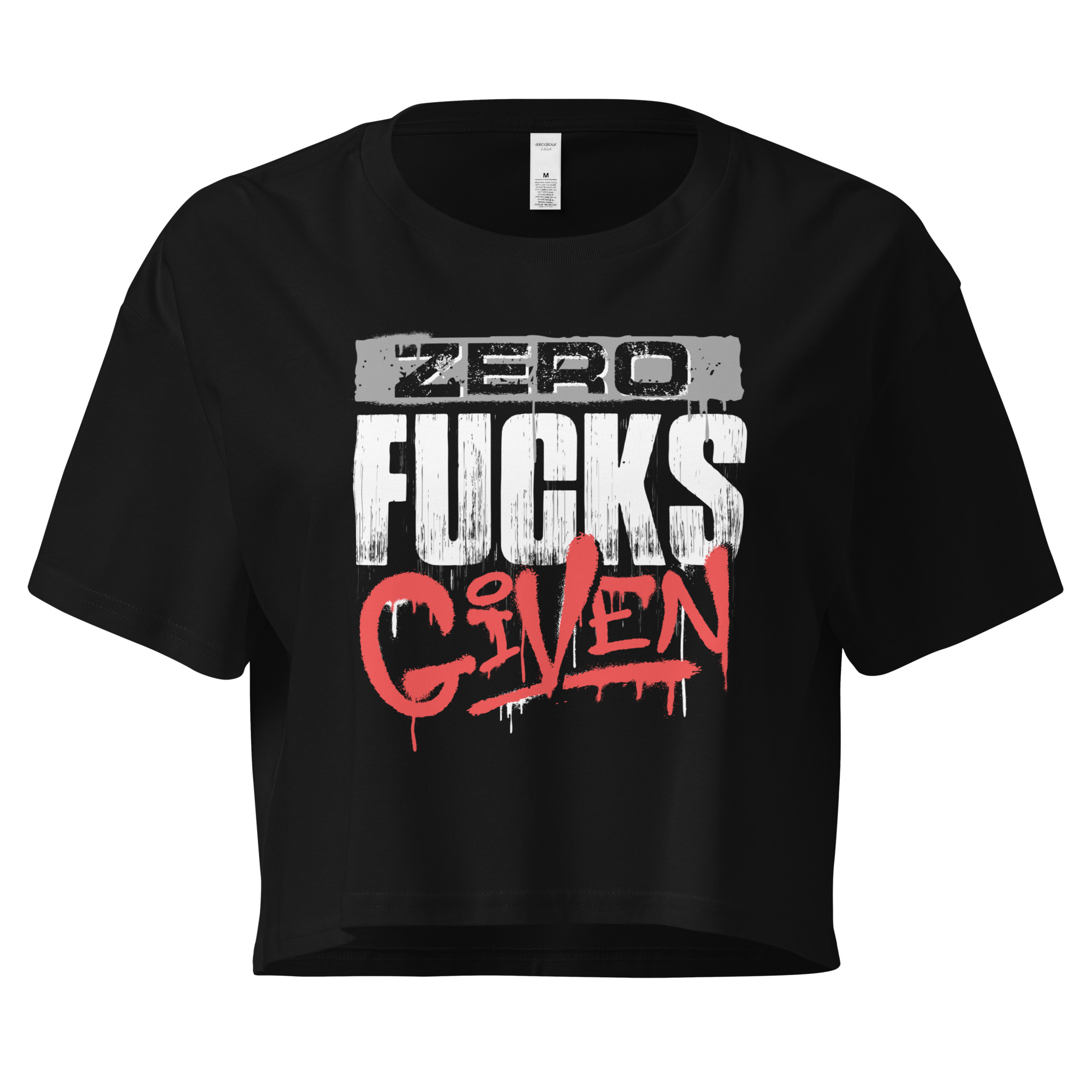 - Our sassy “Zero Fcks Given” crop top. The perfect shirt for all feisty people that never hesitate to show a bit of attitude!